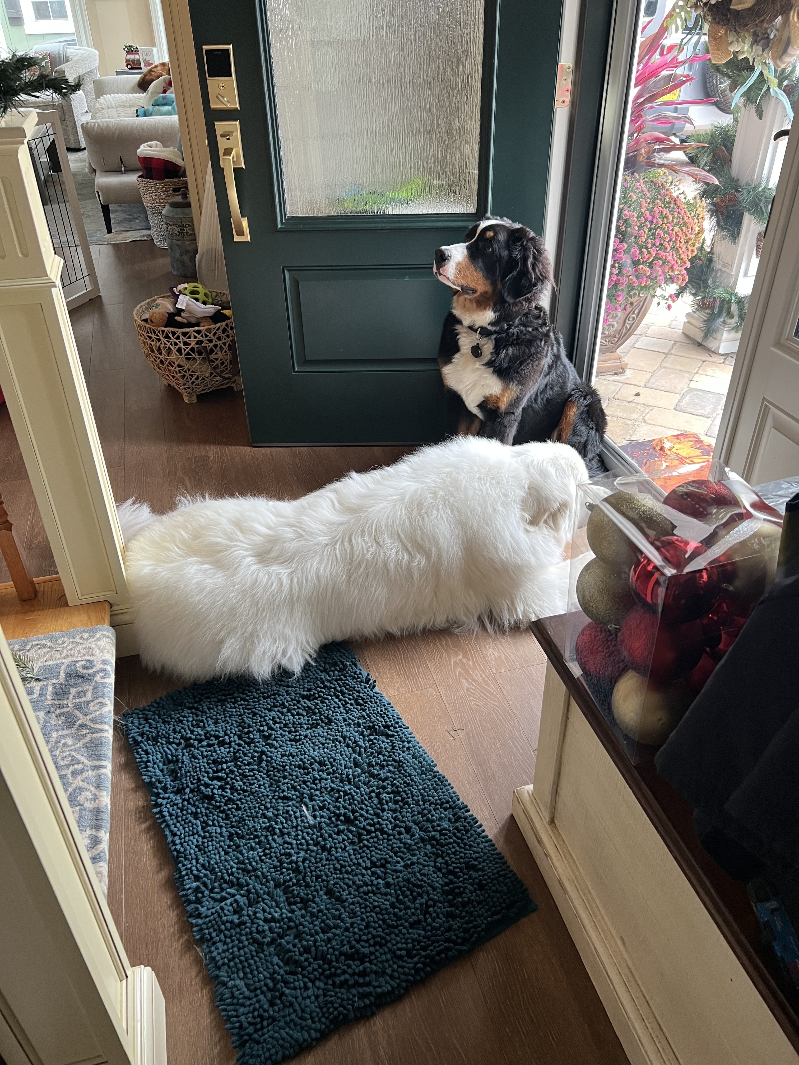 Dividing up guard duty Bear has the stairs Willow had the driveway